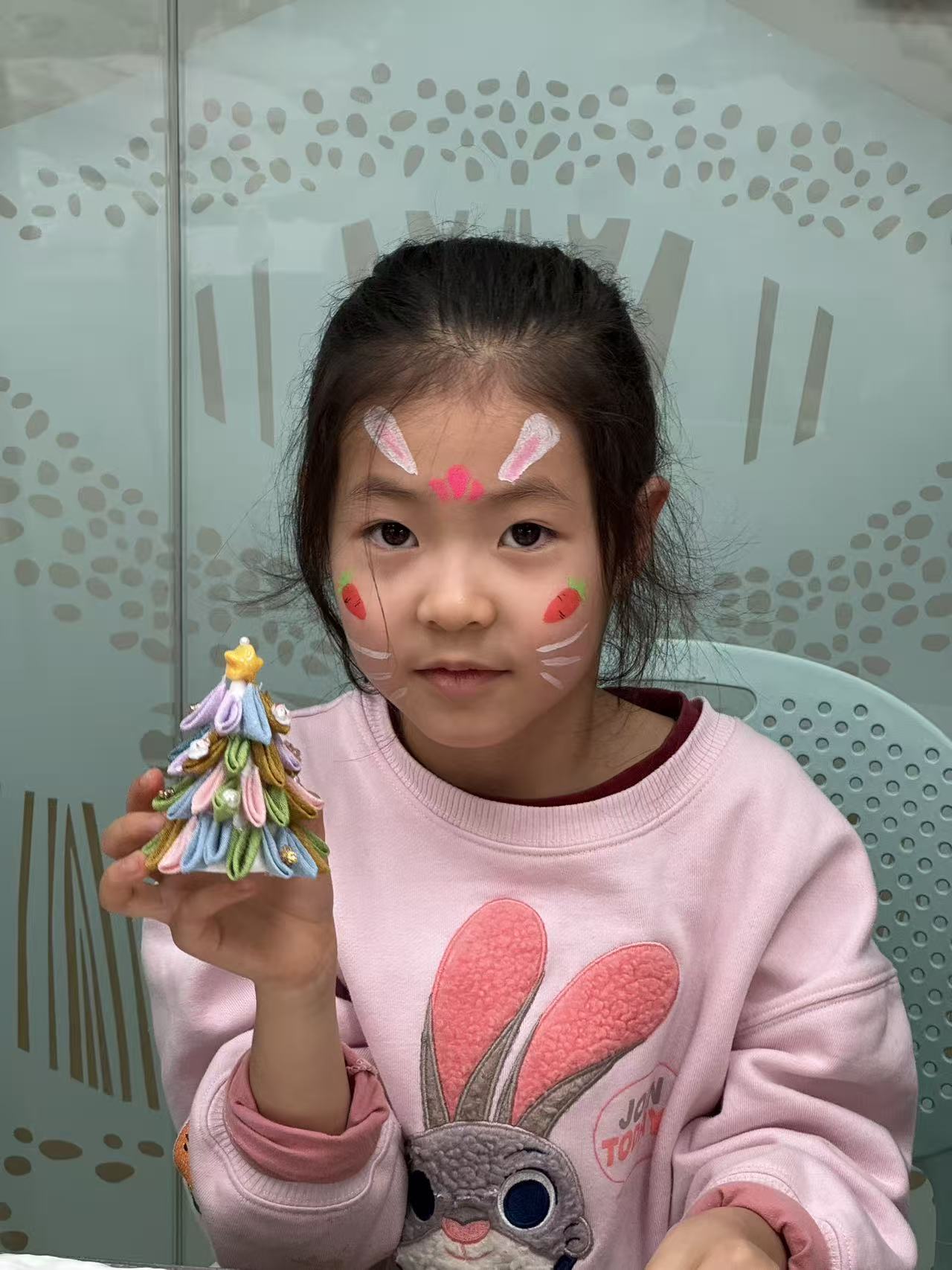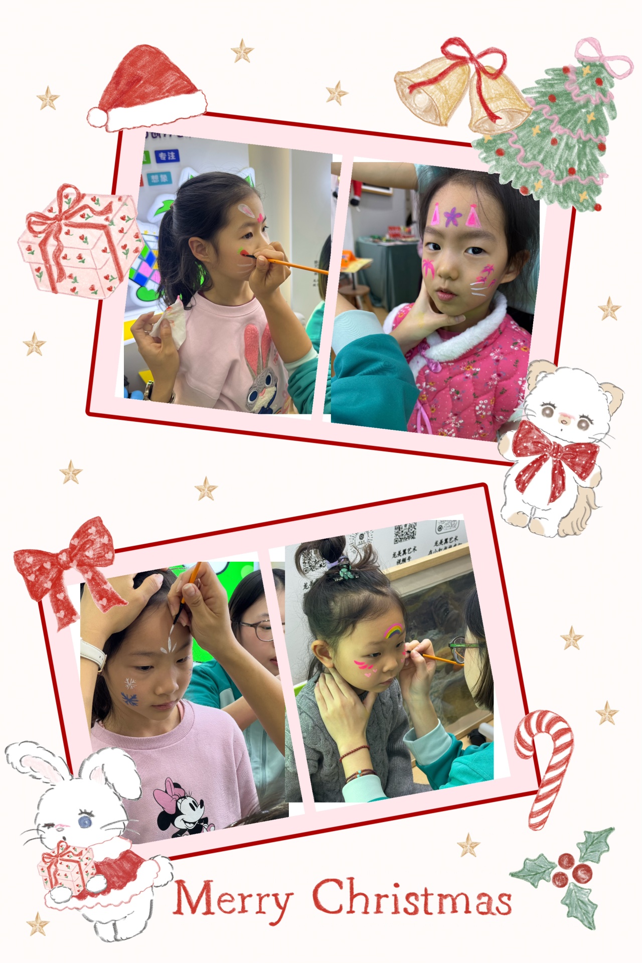 活动伊始,孩子们便迫不及待地来到了脸部彩绘区。我们的专业老师手持彩绘笔,轻轻在孩子们的脸颊上绘出雪花、圣诞树、驯鹿和闪亮的星星。一个个可爱的圣诞小精灵、调皮的小雪人便诞生了!孩子们互相展示着自己的彩绘,笑声此起彼伏,圣诞的欢乐气氛瞬间弥漫整个空间。