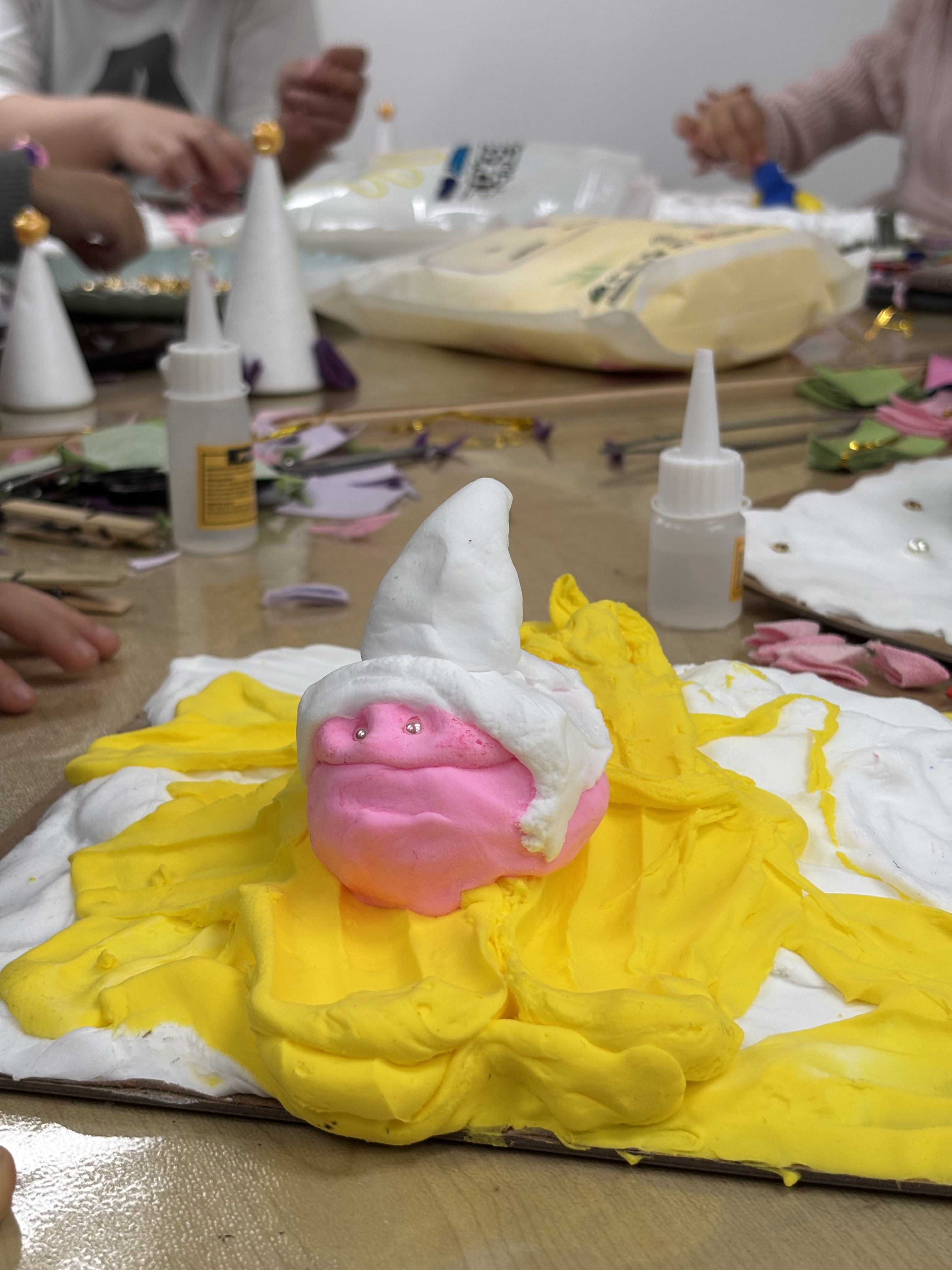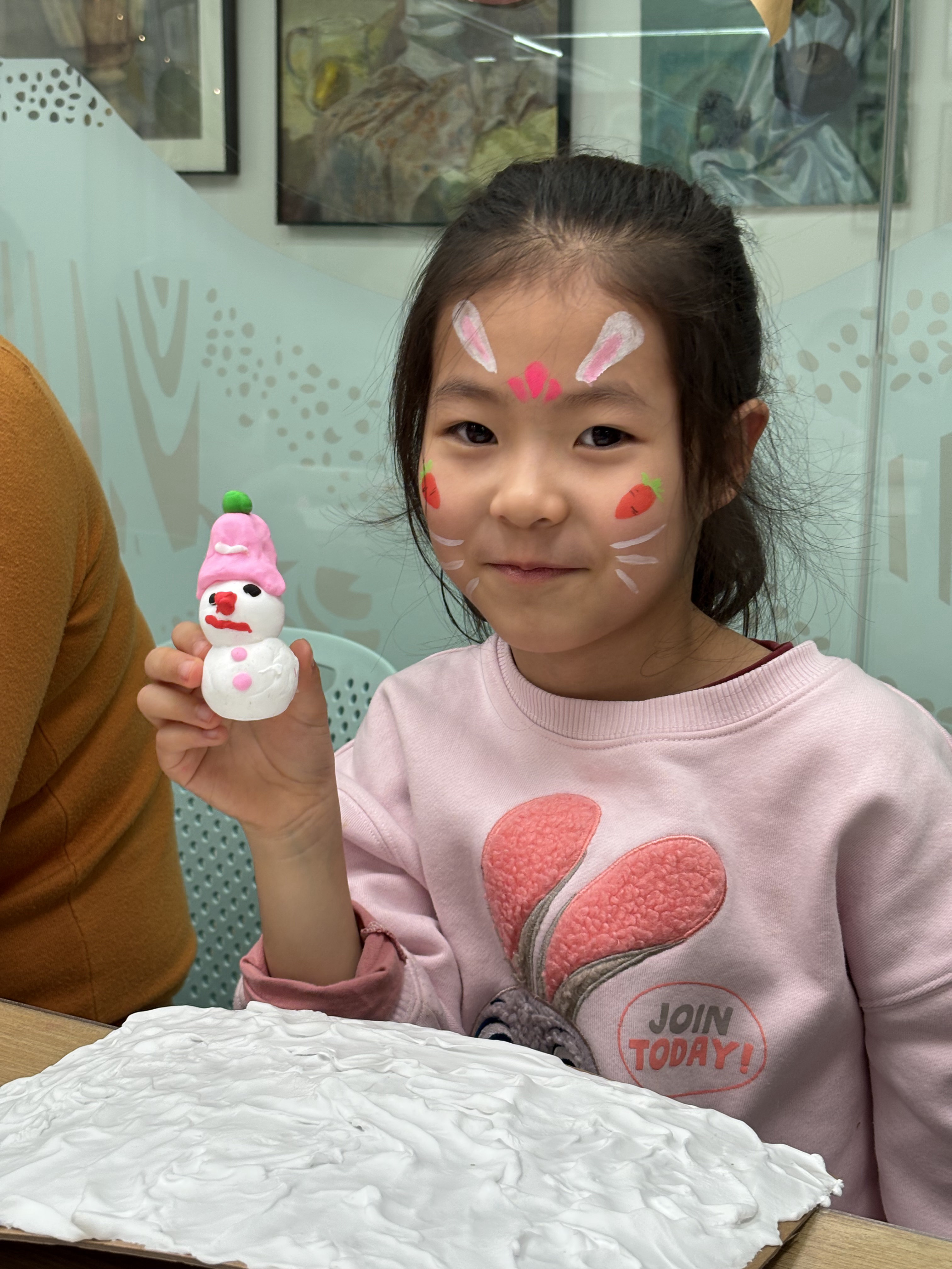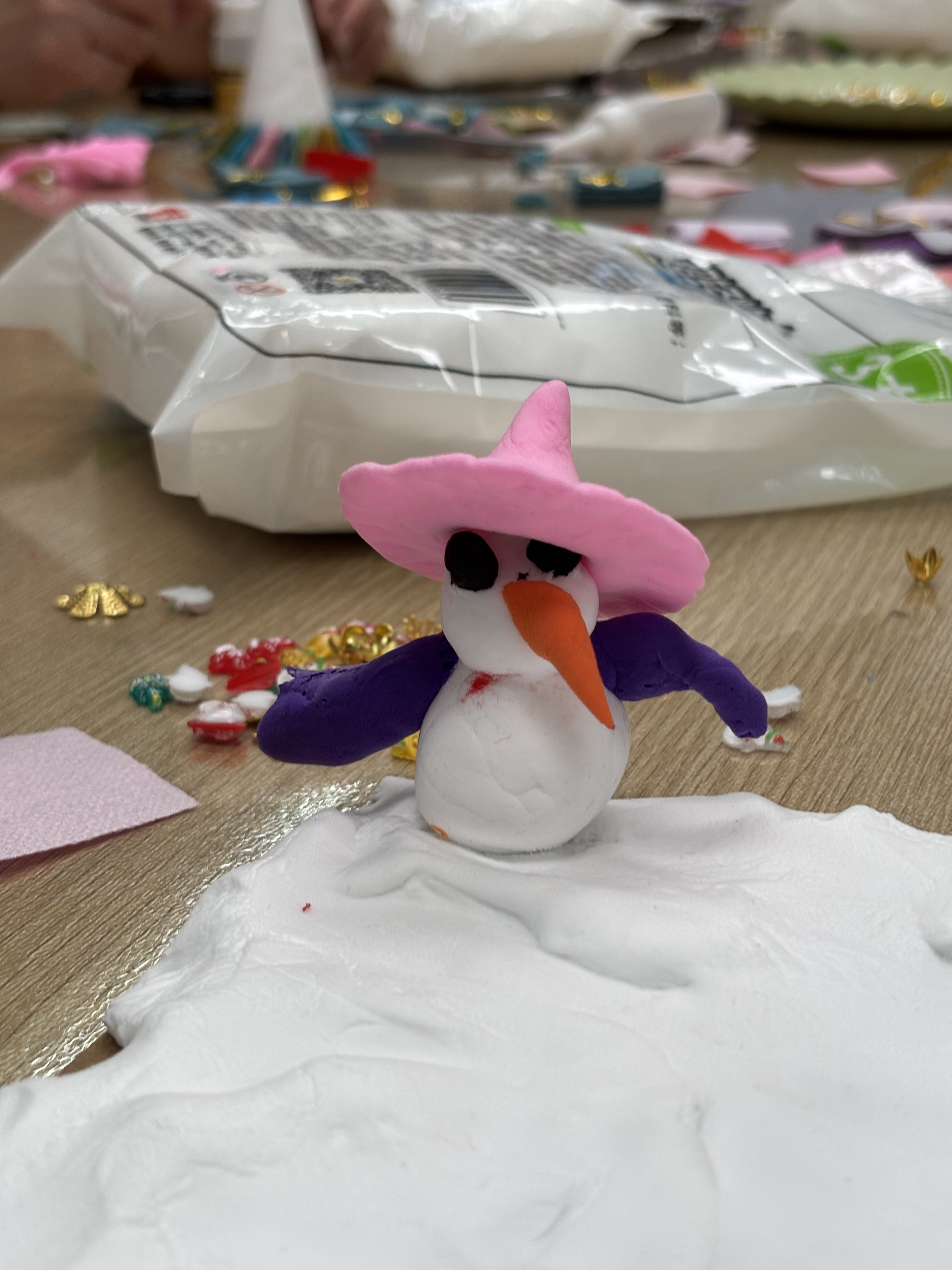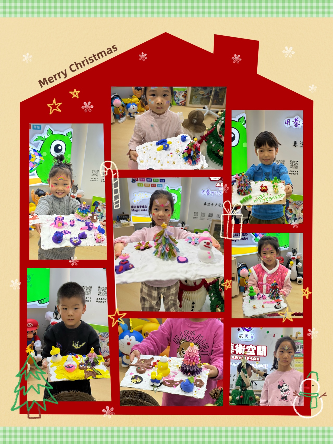 孩子们用超轻粘土来打造自己的冰雪世界,在这里,孩子们发挥天马行空的想象力,用柔软的粘土塑造出属于自己的冬日童话。圆滚滚的雪人、香喷喷的姜饼人、戴着红帽子的圣诞老人……每一个作品都充满童趣与创意。孩子们在捏塑的过程中,不仅锻炼了手部精细动作能力,更在创造中体验到了无尽的乐趣。