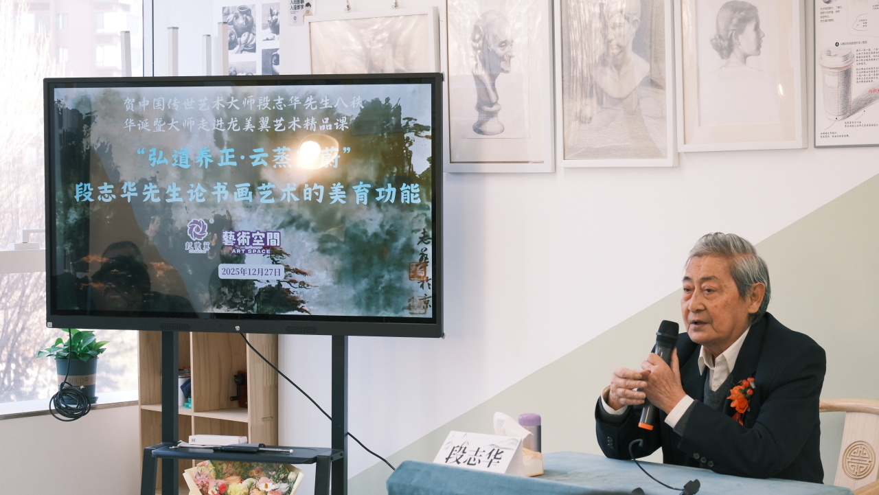 冬至阳生,艺术暖心。12月27日,龙美翼艺术空间墨香四溢,群贤毕至。我们怀着无比崇敬之心,成功举办 “弘道养正·云蒸霞蔚”——段志华先生论书画艺术的美育功能专场活动。值此中国传世艺术大师段志华先生八秩华诞之际,我们以一场高规格、深内涵的艺术雅集,献上诚挚贺礼,更让学员与家长们沉浸式体验了一场关于美、关于传统、关于生命修为的深度对话。