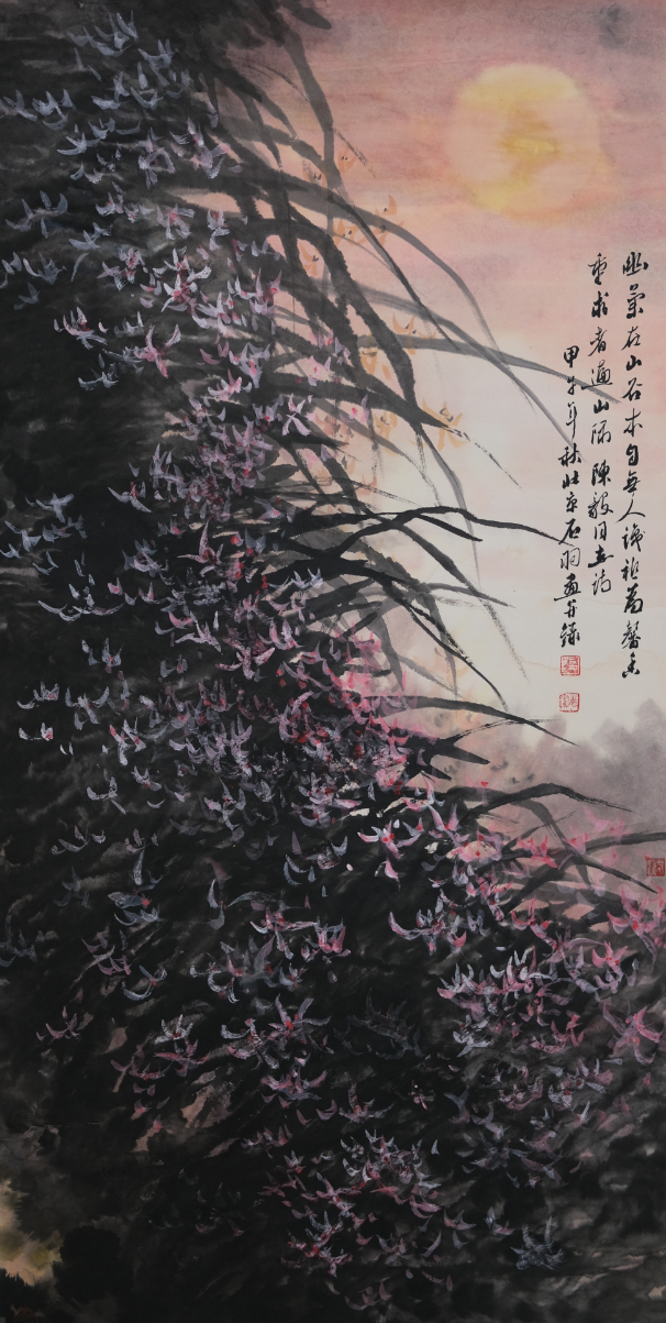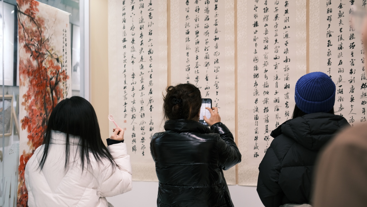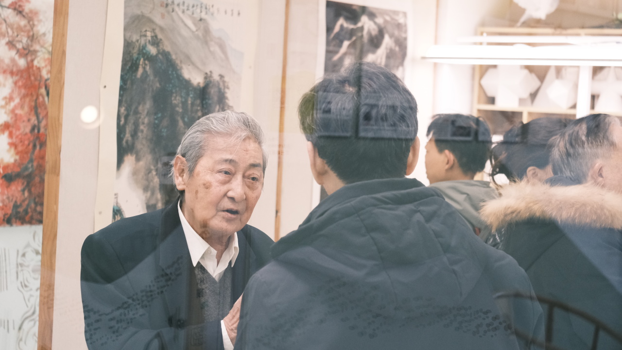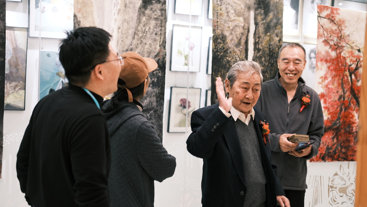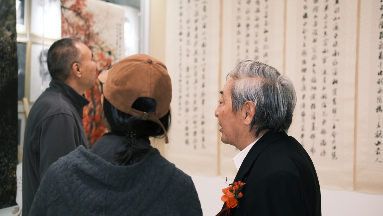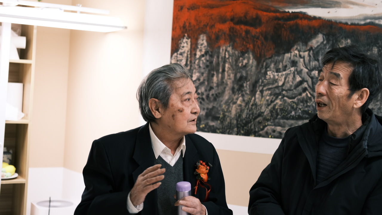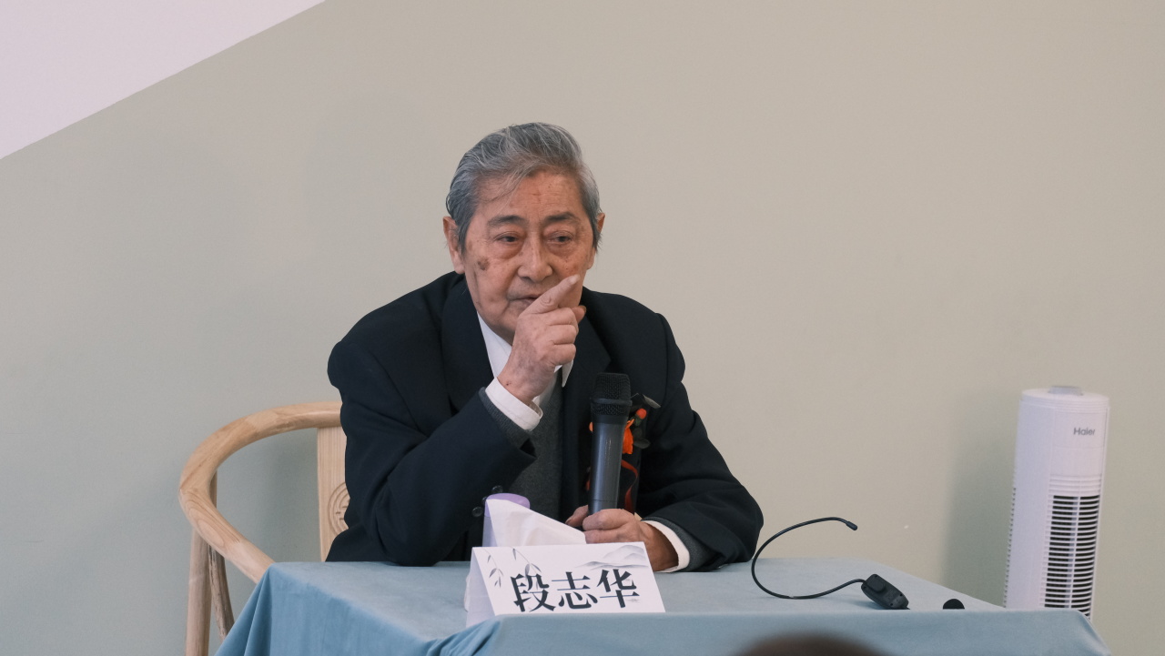 四、五画室内,段志华先生历年精品书画静静陈列。令人惊喜的是,段老亲临展厅,亲自为来宾讲解创作背后的故事与哲思。站在大师真迹前,聆听其娓娓道来,笔墨间的气韵与格调,顿时有了更为鲜活而深刻的生命。