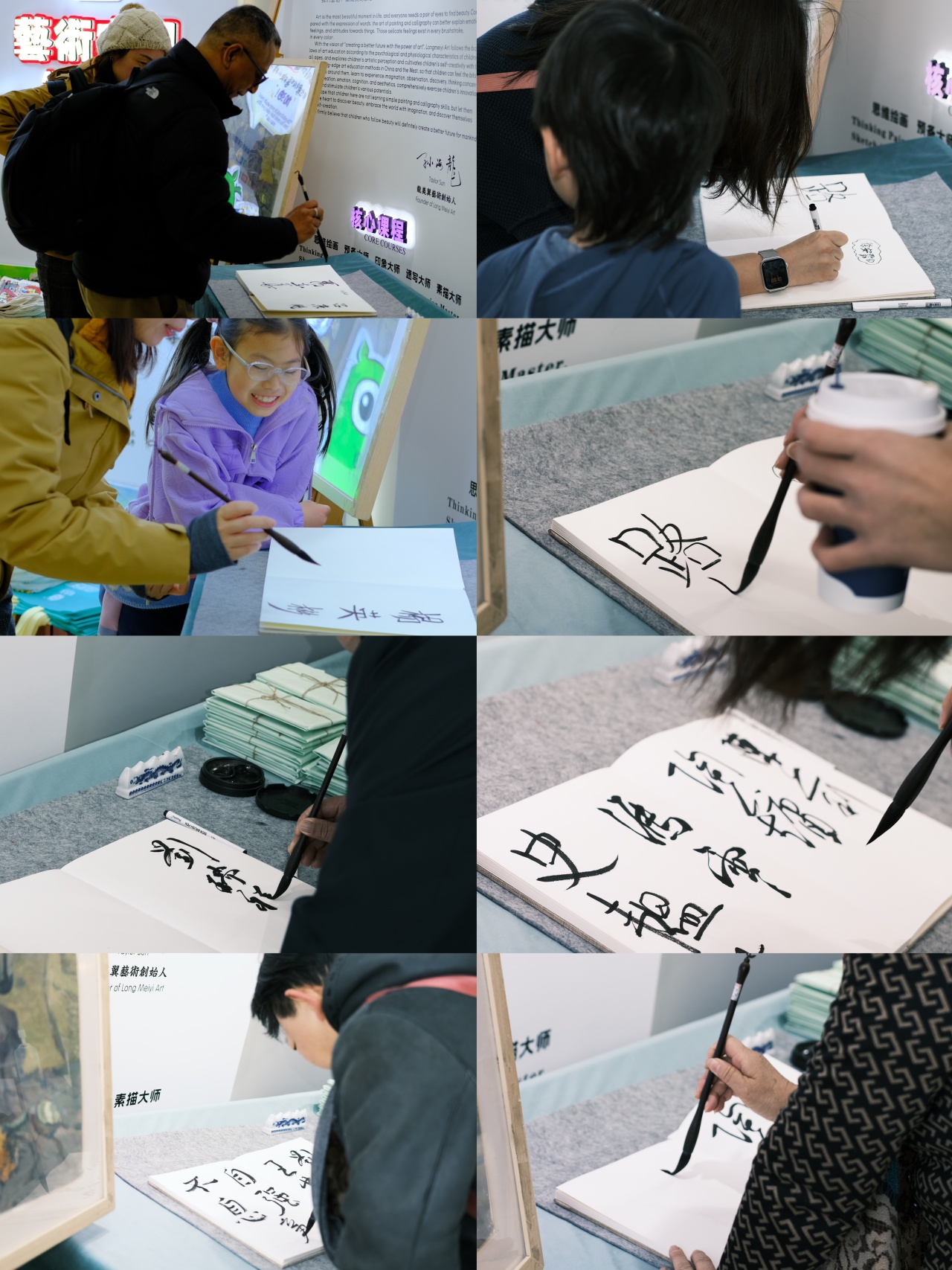 嘉宾、学员与家长们如约而至。佩戴胸花与姓名贴,在签名簿上郑重留名、合影,领取精心设计的纪念明信片与活动礼。随后,在工作人员的引导下,大家先行参观了龙美艺术空间,在宁静雅致的氛围中,悄然步入艺术的世界。