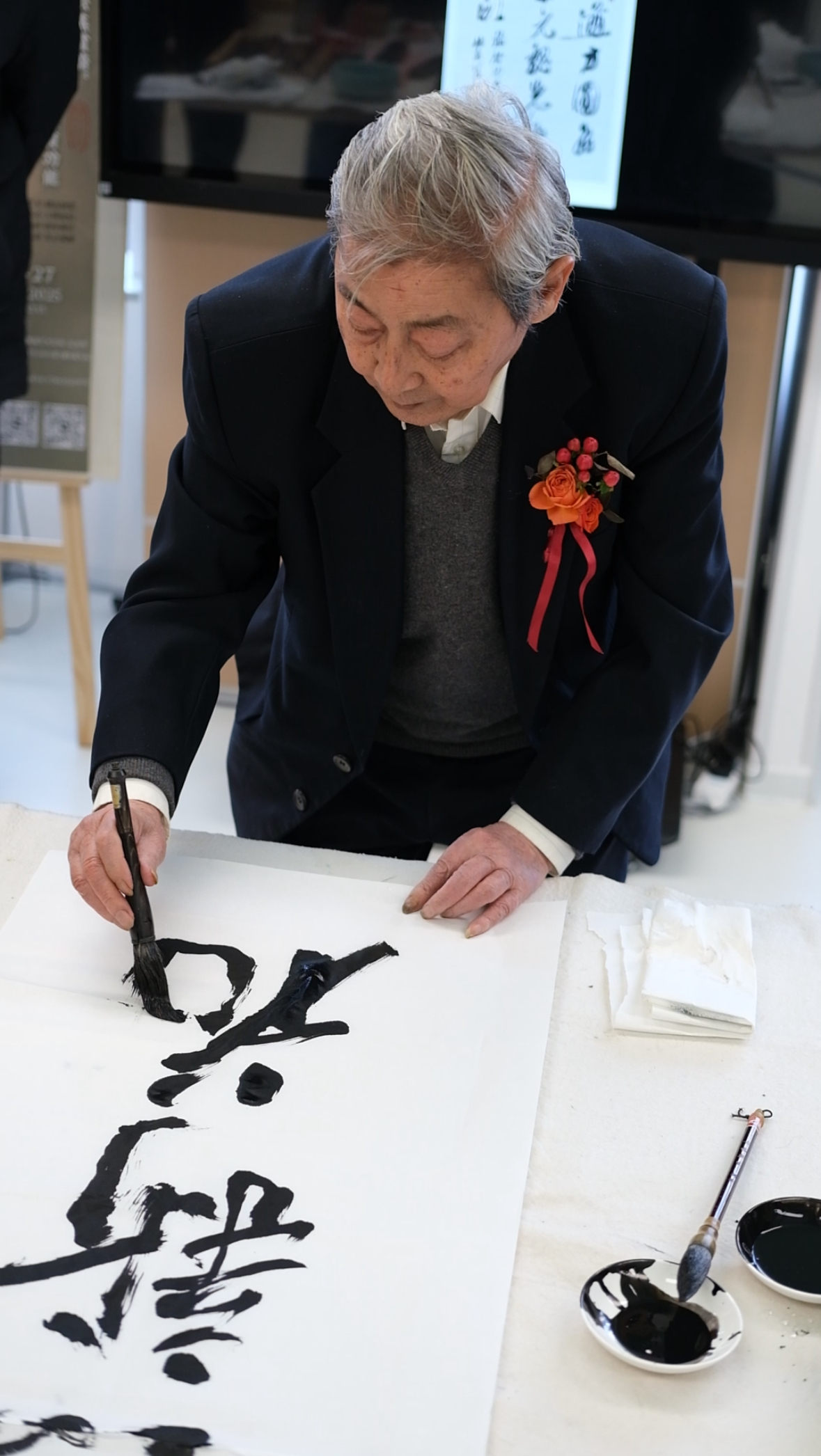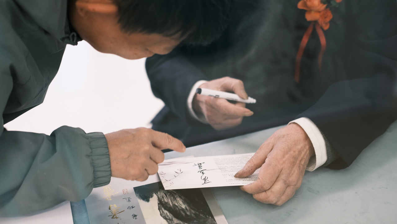 活动“云蒸霞蔚”书画笔会 于二、三画室震撼上演。段老与弟子们铺纸研墨,即兴挥毫。只见笔走龙蛇,墨彩飞扬,顷刻间,一幅幅气韵生动的作品跃然纸上,充分展现了东方书画“意在笔先、气韵生动”的至高境界。现场观摩者无不屏息凝神,深受震撼。段老更在特别准备的个人作品明信片上为学员们签名、题写上鼓励寄语,这份独一无二的纪念,弥足珍贵。