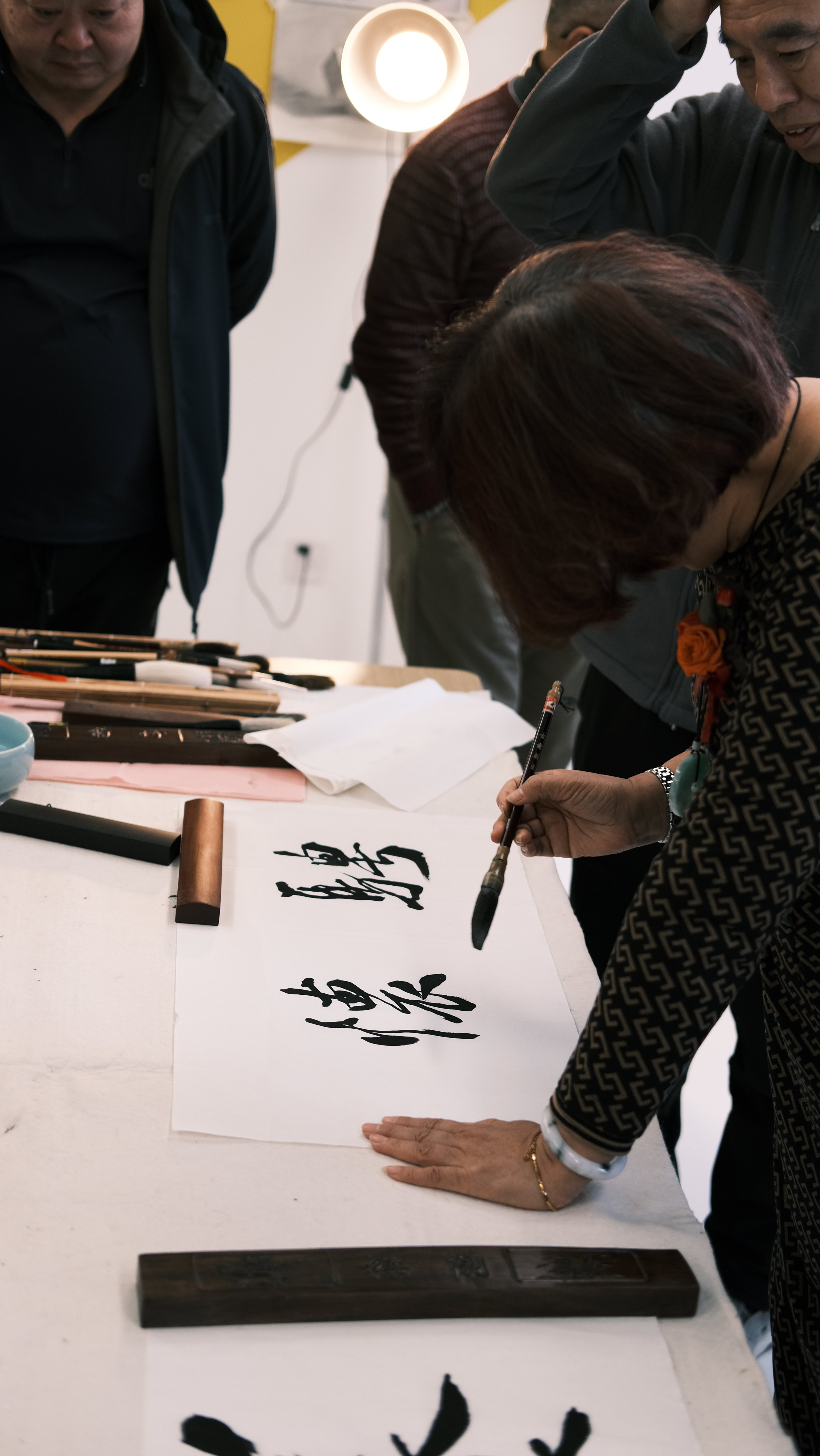 接下来的 “大师精品课” 在书法教室专属进行。段志华先生携其弟子,为龙美翼艺术空间的学员们进行面对面、手把手的书画创作指导。这是属于学员们的宝贵时刻,大师的悉心点拨,不仅在于笔墨技法,更在于心法传承。一勾一勒,一皴一染,皆是学问。